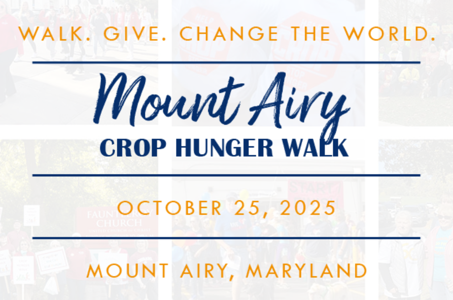Please join local churches and our community for the Mount Airy CROP Hunger Walk to be held on Saturday, October 25, 2025 at Watkins Park. Registration begins at 8:30am in the parking lot of St. Andrews Presbyterian Church, 609 Center St., Mt. Airy with a walk around Watkins Park starting at 9:00am.